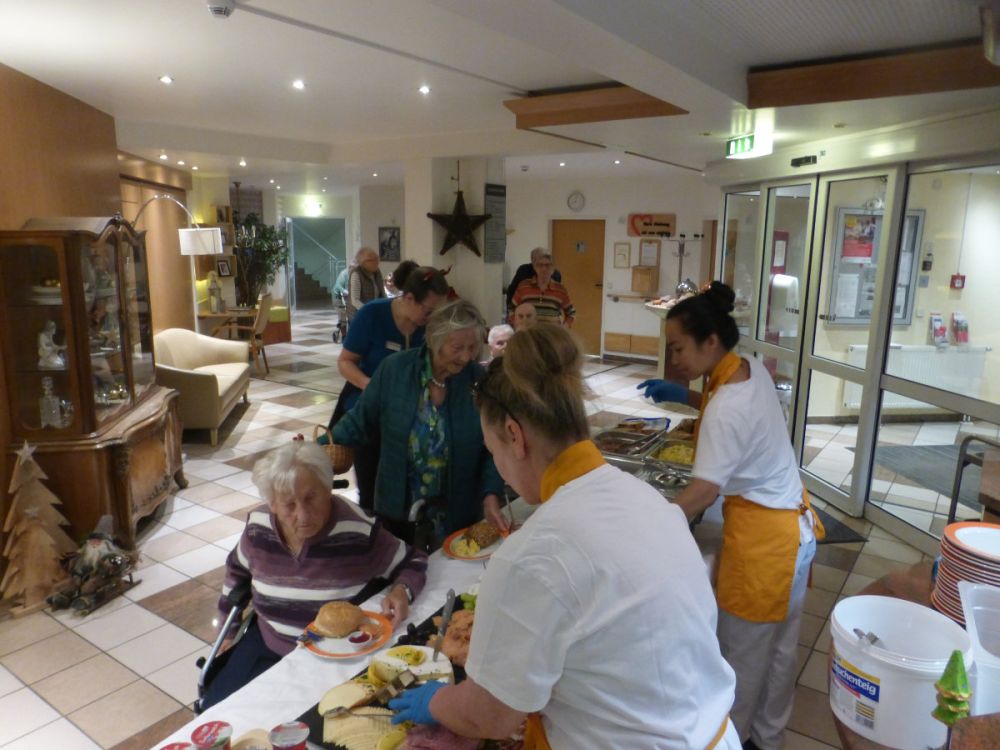 Der Duft von frisch zubereiteten Köstlichkeiten lag schon in der Luft, als sich die Cafeteria für unser Weihnachtsbuffet füllte. Auf langen Tafeln warteten Lachs, Käse, Salate, feine Desserts und noch vieles mehr. Ein liebevoll angerichtetes Festmahl, das sofort für strahlende Gesichter sorgte.