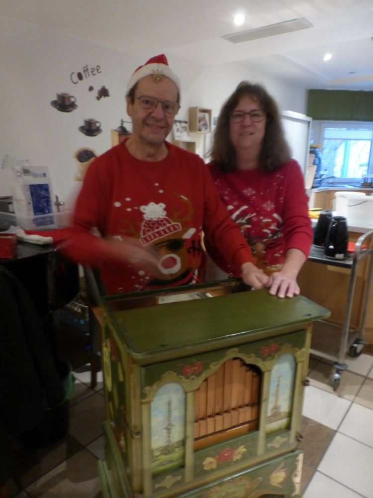 Mitten im Genuss tauchten Hans und Marianne auf – beide im fröhlichen Weihnachtslook und mit ihrer zauberhaften Drehorgel im Gepäck. Kaum erklangen die ersten Melodien, füllte sich der Raum mit dem Gefühl von Weihnachten. Und wwischen den Musikstücken erzählten sie kleine Weihnachtsgeschichten – herzlich, besinnlich und zum Träumen schön.
