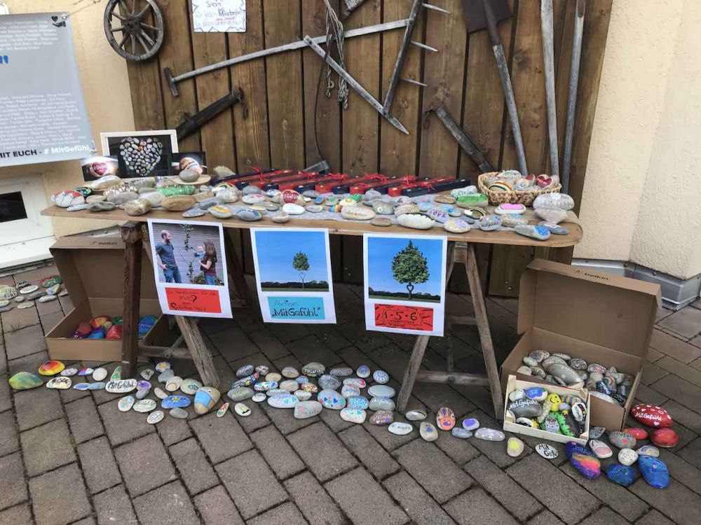 Doch nicht nur das: Ein weiteres Highlight krönte die Überraschung und knüpft an die im Frühjahr 2020 entstandene Tradition an, bei der hunderte bunt bemalte Steine – sogenannte Wörthersteine – rund um die Wörther Schlosswiese ausgelegt wurden. So kreierten 15 Steinmalerinnen in mehreren Nachtschichten 280 kleine Meisterwerke mit dem Schriftzug "MitGefühl". Eines für jeden unserer Mitarbeiter und eines für jeden aus der Unterstützerliste, um so die Verbundenheit zu symbolisieren und gleich auch das große Engagement der Residenz wertzuschätzen.